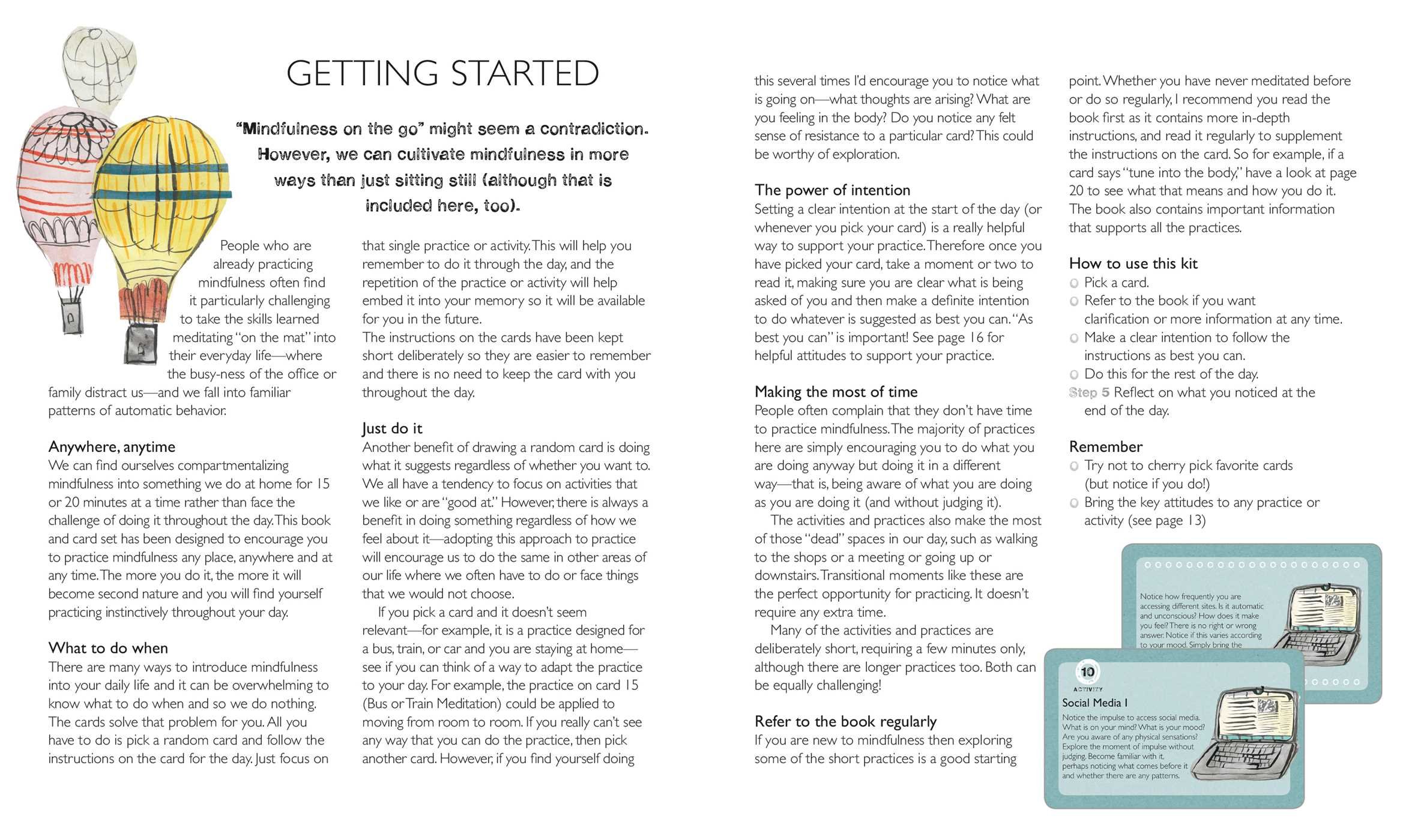 As you become familiar with the type of practices, you will find that you begin to do them without the card prompts, and mindfulness will become part of your daily life.